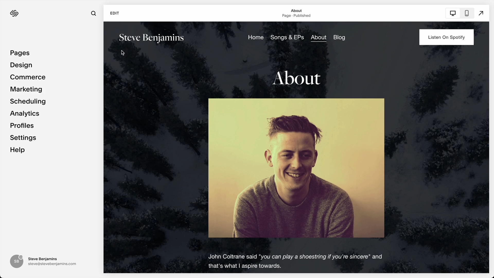 Squarespace is like the Apple of website builders—it is intuitive and thoughtfully designed. There’s a certain focus on user experience, even with the tiny things. For example, Squarespace includes a handy tool that lets users adjust the focal point of an image. Another example: Squarespace elevates the page by placing the toolbar below, ensuring you have a full view of the web page when editing.