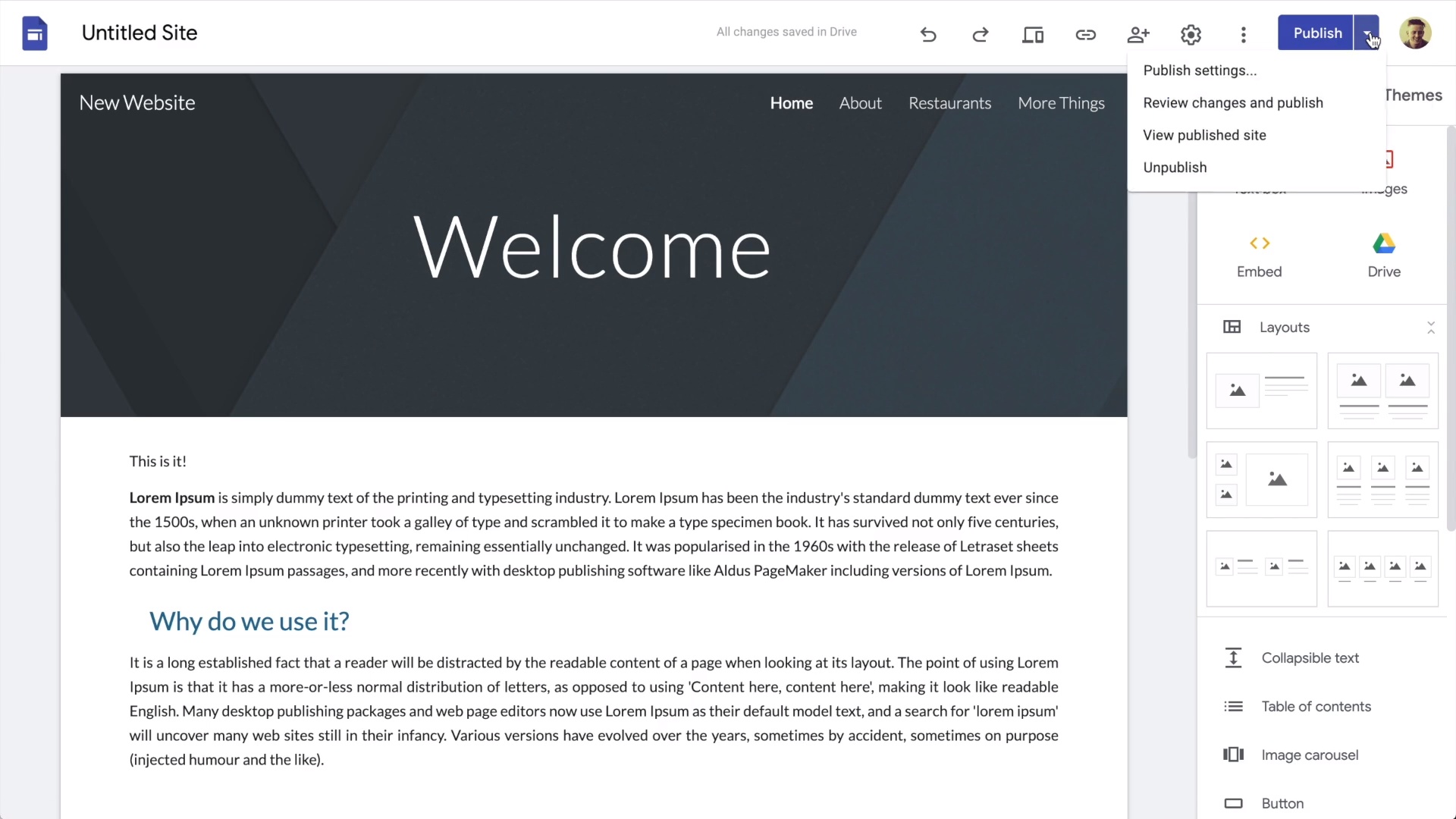One interesting thing is that Google Sites integrates well with other Google products like Google Calendar, Maps, Docs, Slides, Sheets, and Forms. Plus, you can restrict your website to users in your organization.
