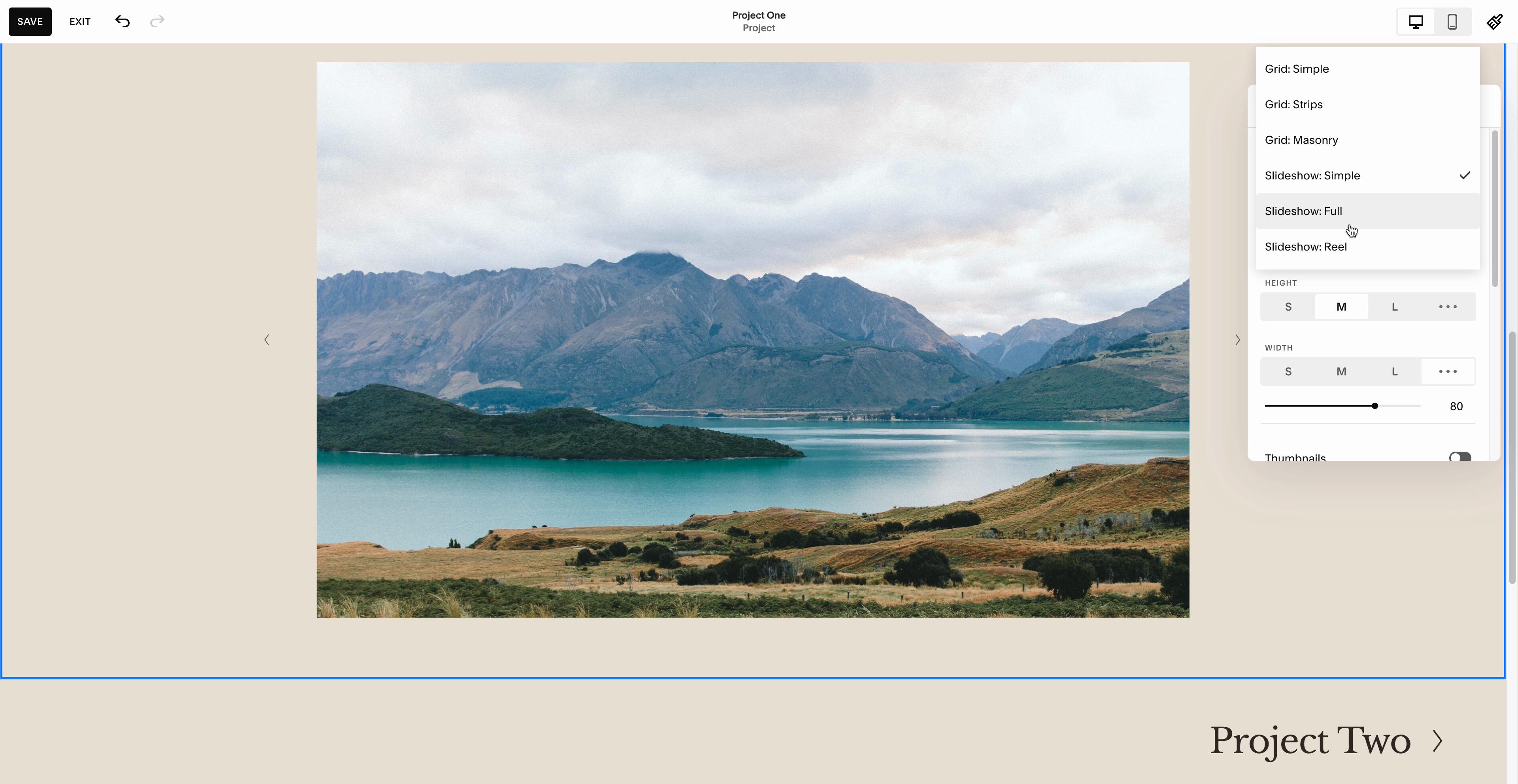 Changing Squarespace portfolio layouts