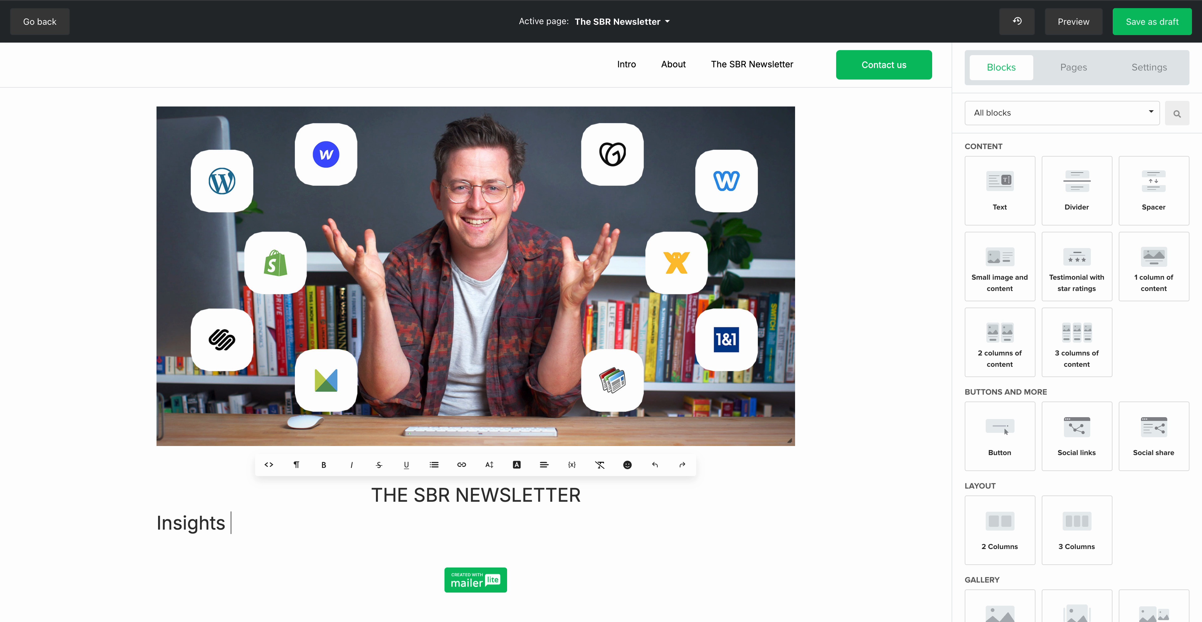 Using Mailerlite editor