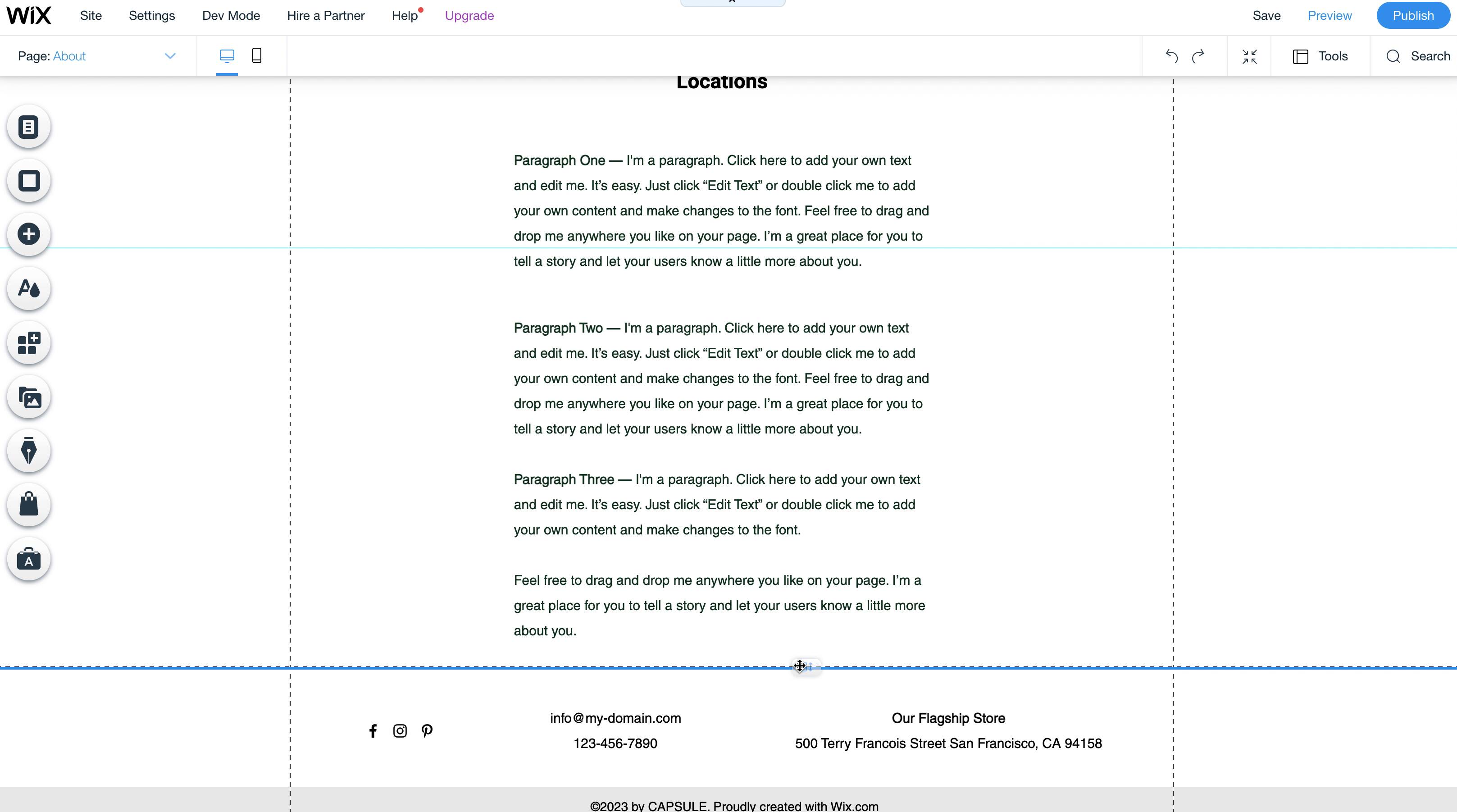Wix is what I call an unstructured editor. It’s highly customizable.