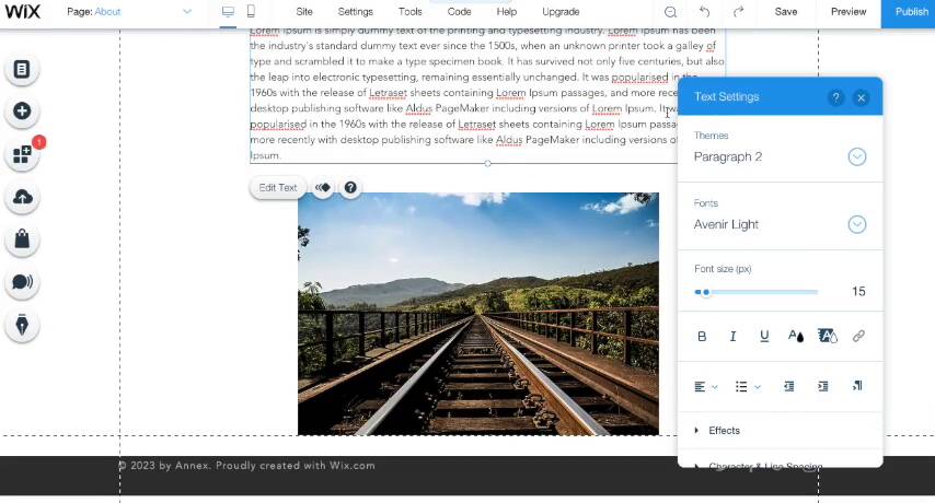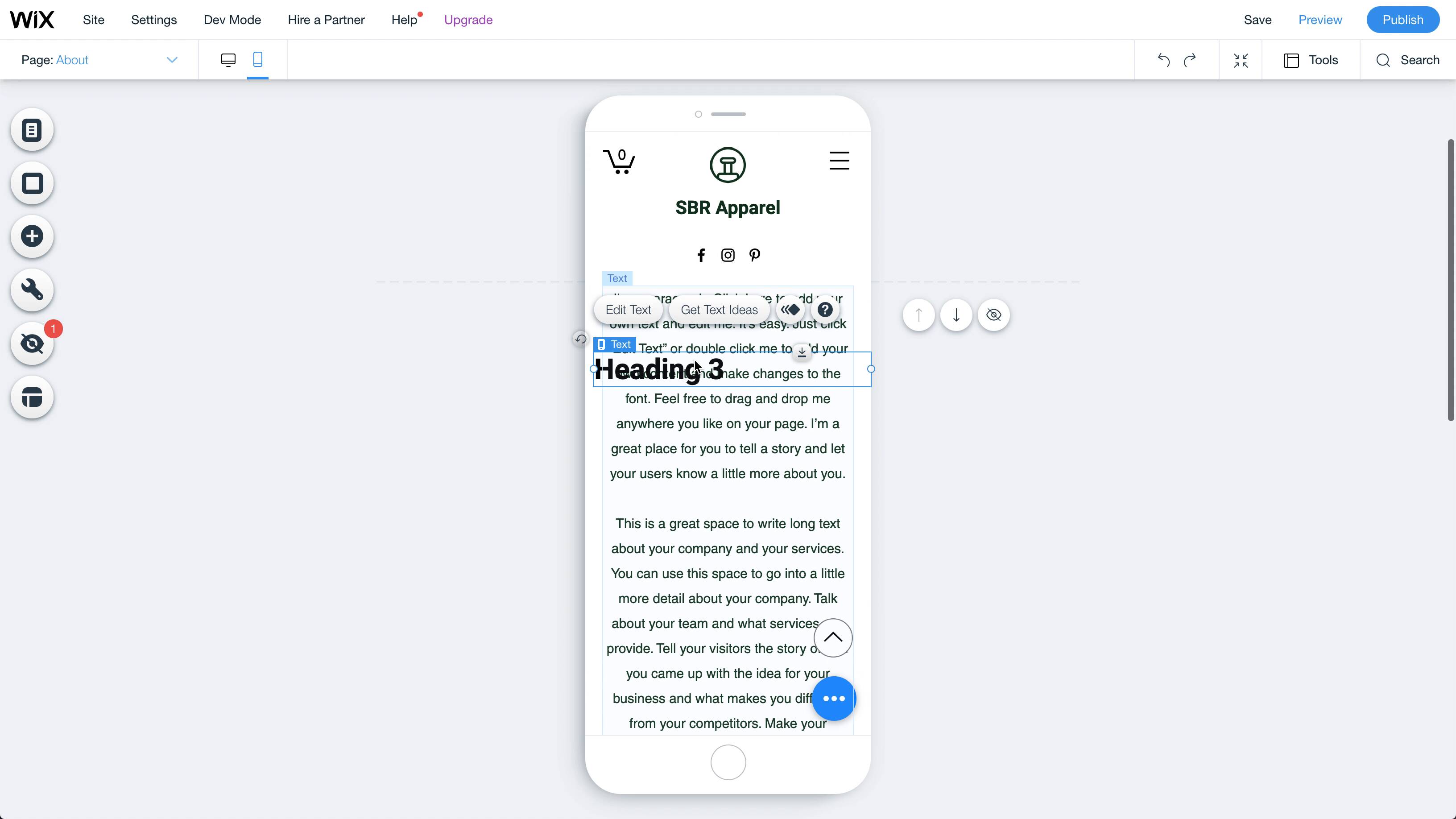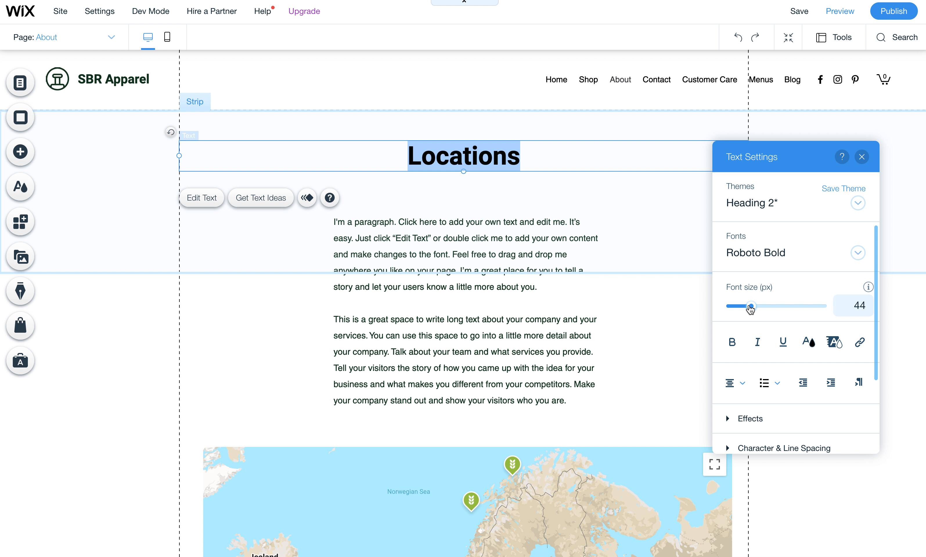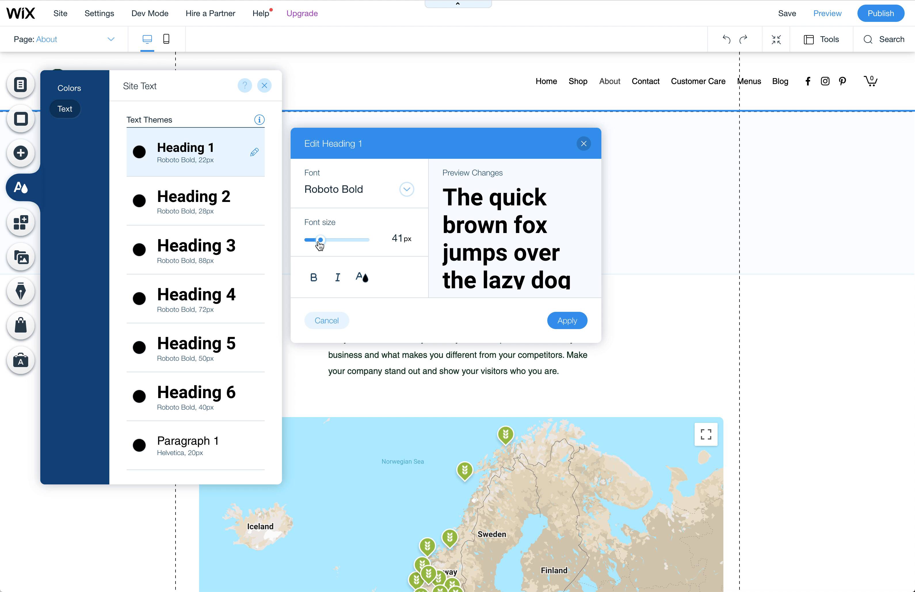 Individual elements can also be customized. Want to give this Heading 1 a font size of 12px? Wix allows you to do that.