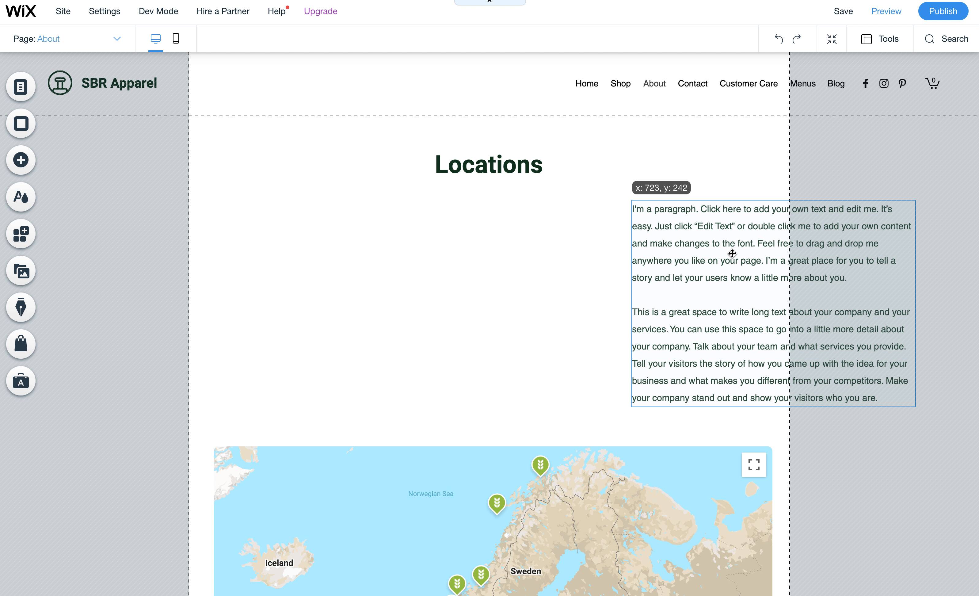 Shopify's page editor isn't a drag and drop page editor like Wix.